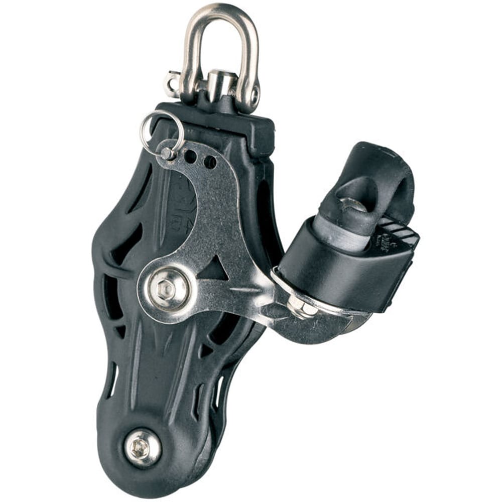 Polea violín con rodamientos, grillete giratorio y mordaza Wichard: robusto y fiable para uso náutico.