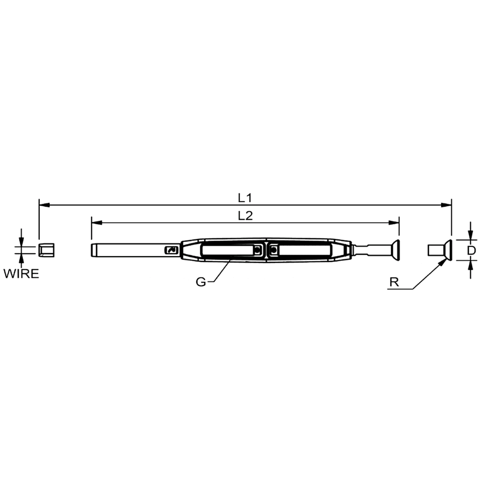 Tensor abierto con bola y terminal para prensar — rosca UNF BlueWave